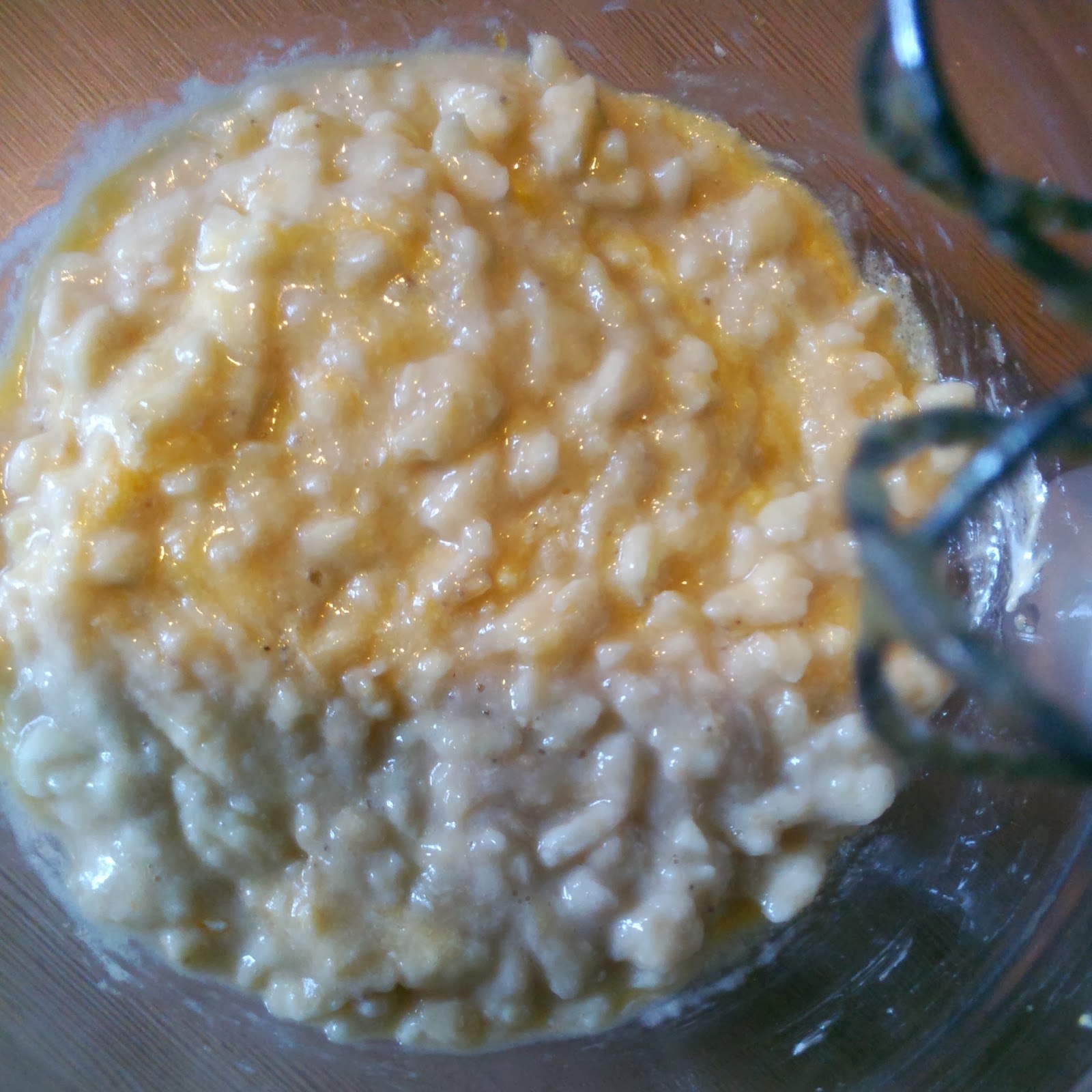 Добавить бананы (размять вилкой в пюре), снова взбить всю массу миксером.